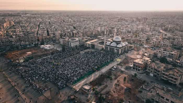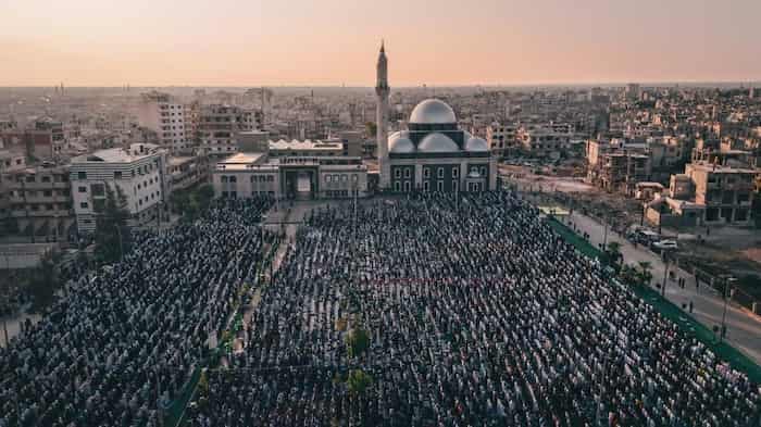 حضور كبير من الوجهاء والأهالي لتأدية صلاة عيد الأضحى المبارك في ساحة مسجد خالد بن الوليد