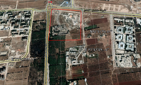 يحده غرباً طريق عام حمص - دمشق وخلفه غابة 8 آذار وشمالاً طريق عام حمص - تدمر