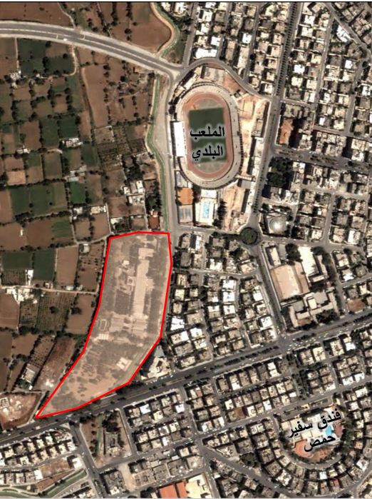 يقع مقابل الملعب البلدي في مدينة حمص، على مساحة 2.64 هكتار، ضمن منطقة البساتين المحيطة بمنطقة سكنية راقية (سكن درجة أولى)